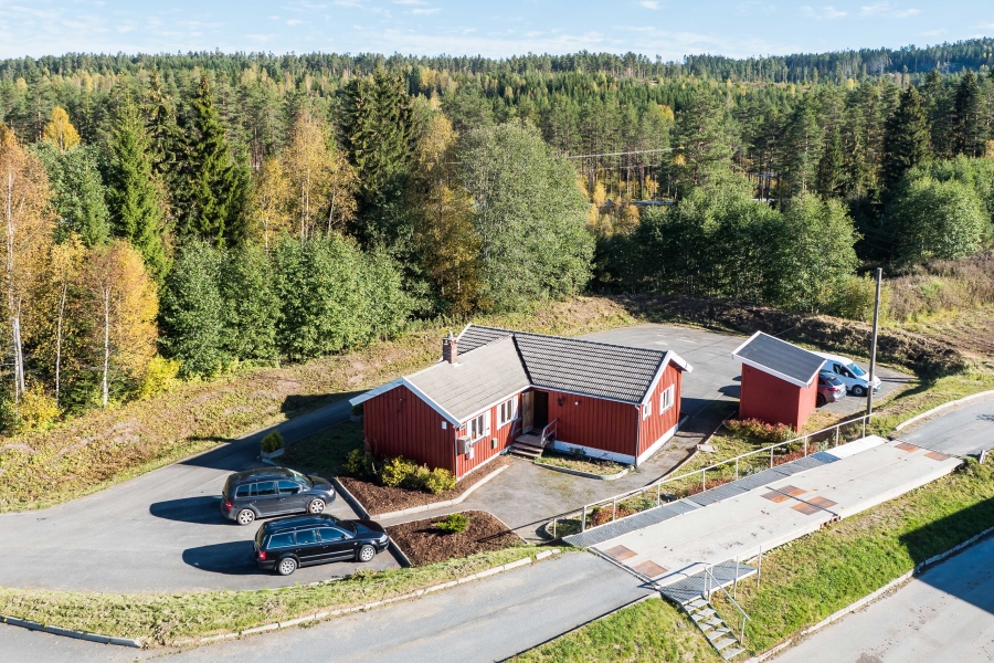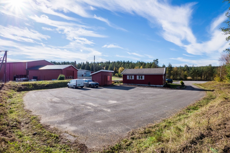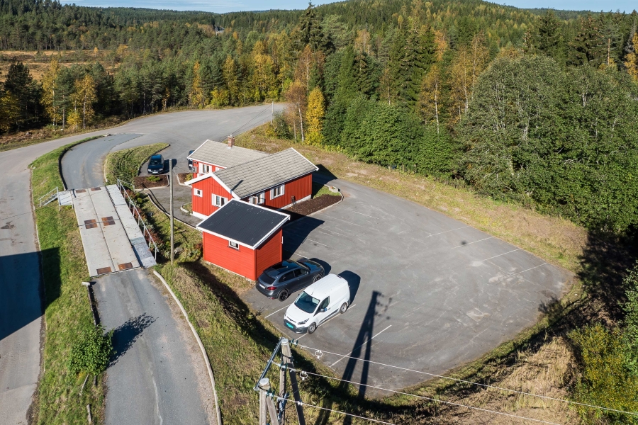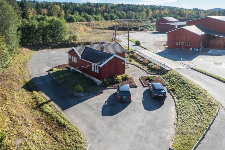 Kontorbygg med hvilerom/spiserom. Toalett, dusj og kjøkken. Asfaltert areal rundt bygget med gode parkeringsmuligheter.